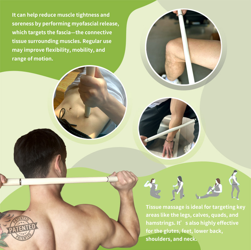 Die Yoga-Pilates-Stange vereint Massagestab und Pilates-Pushbar in einem 2-in-1-Gerät. Trainieren Sie Arme, Beine, Hüfte, Taille, Nacken und Rücken. Das Muskelregenerationsgerät besteht aus hautfreundlichem Silikon und bietet sanften, präzisen Druck für eine komfortable Anwendung. Nutzen Sie den Myofaszial-Release-Stick einfach für verschiedene Übungen und halten Sie Ihren Körper fit.